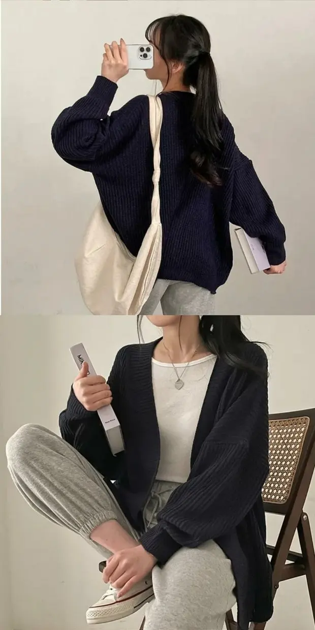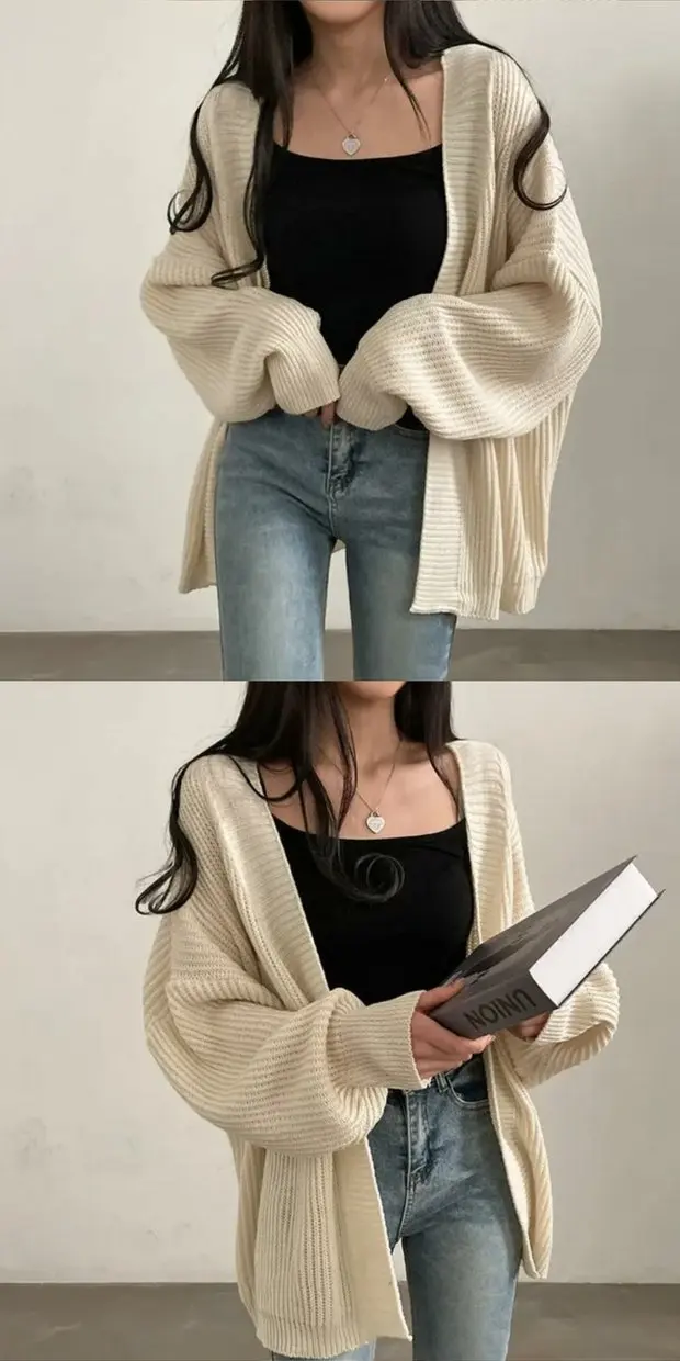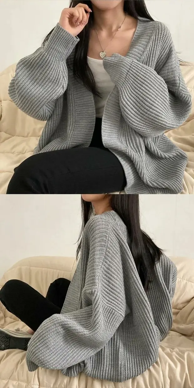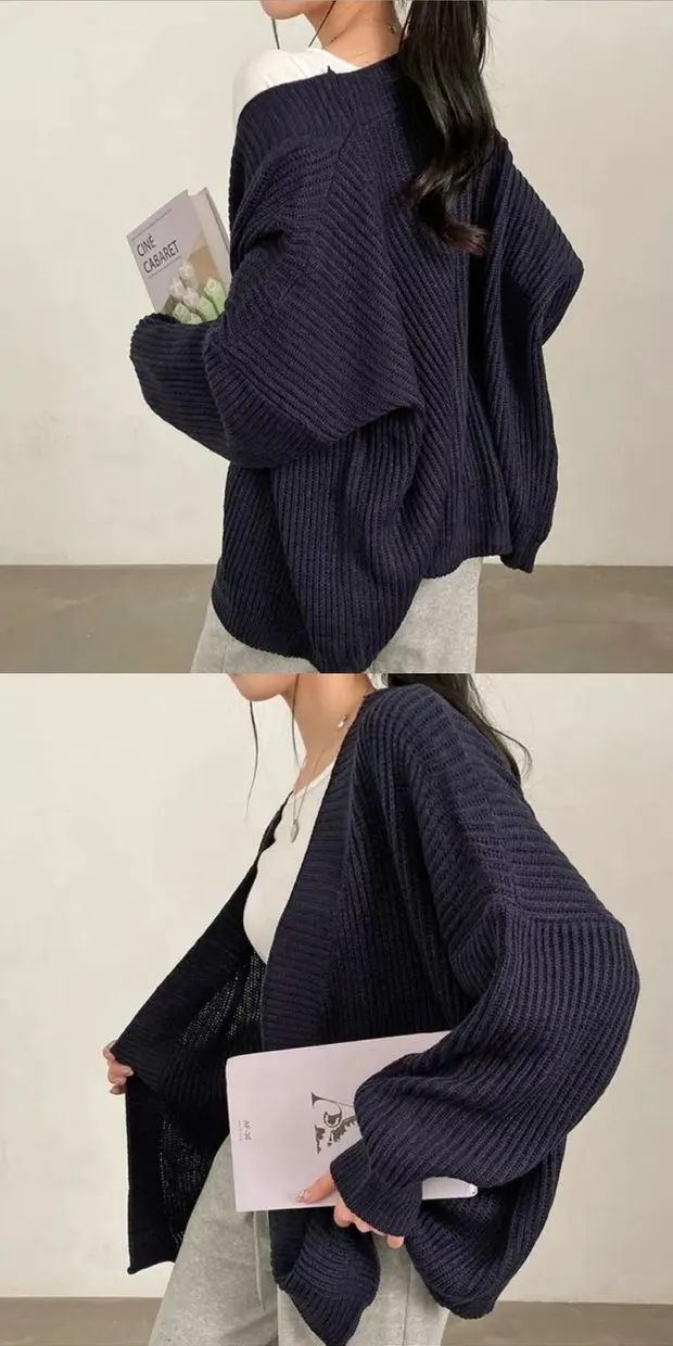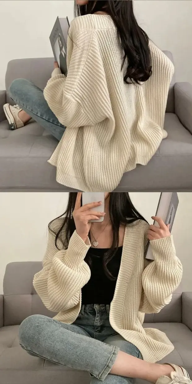 Women’s Loose Warm Knit Sweater, Solid Pullover Korean Style 2025