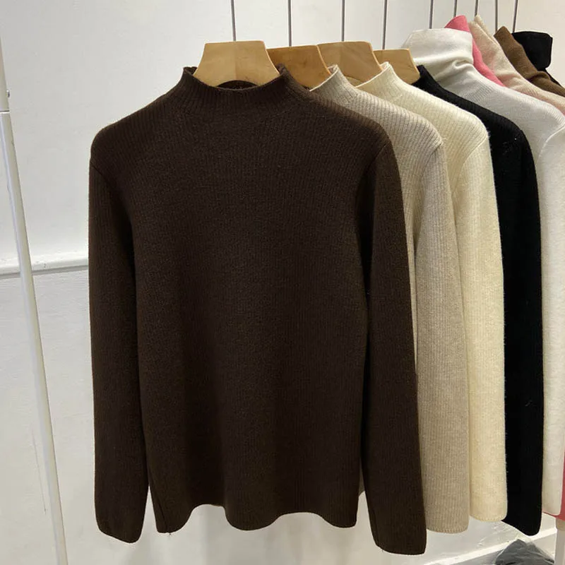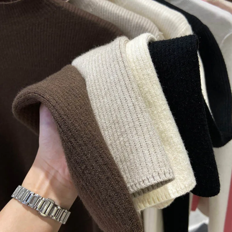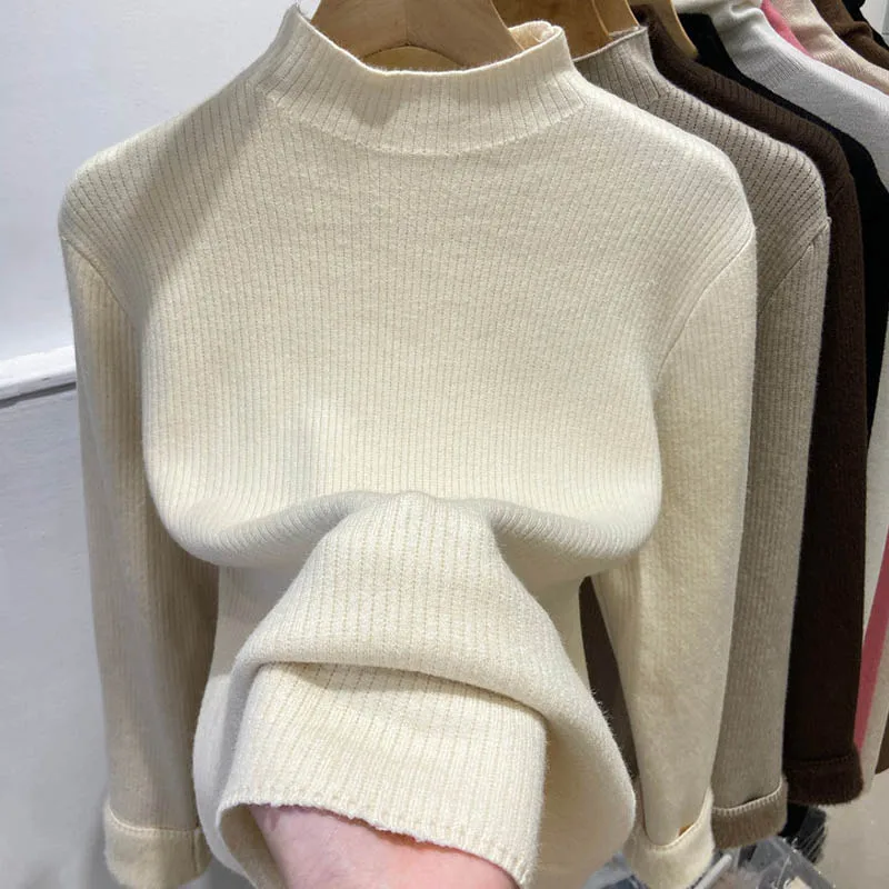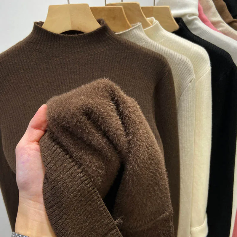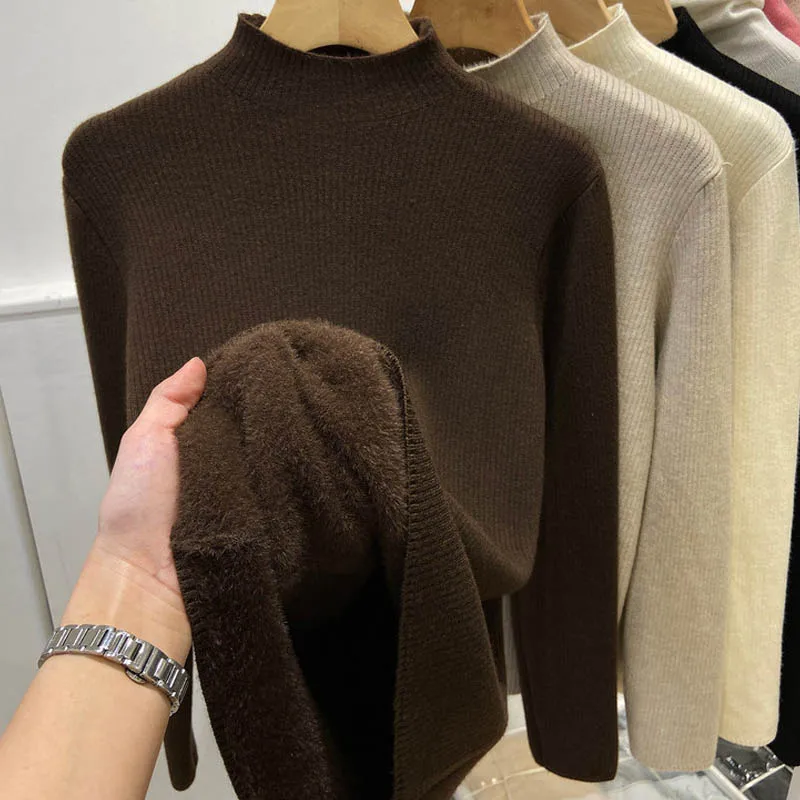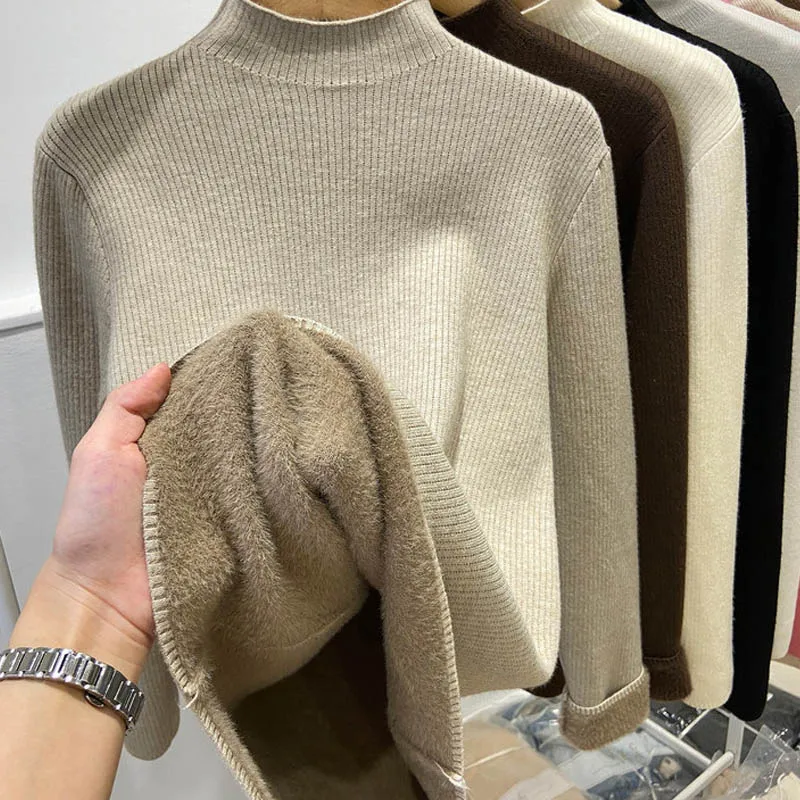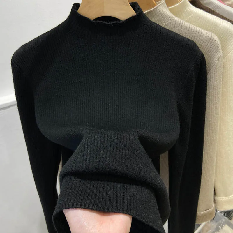 Women’s Thick Velvet Turtleneck Knit, Warm Black Slim Pullover Sweater